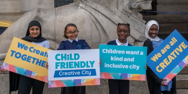 Child Friendly Creative City is our new 3 yr £1.5m programme (2025-2028) thanks to a successful Arts Council 'Place Partnership Project Grant' and match funding from 22 of our arts partners. By taking a child rights-based approach, together with our wonderful arts and community partners, we are addressing real inequalities in access and participation in arts and culture.